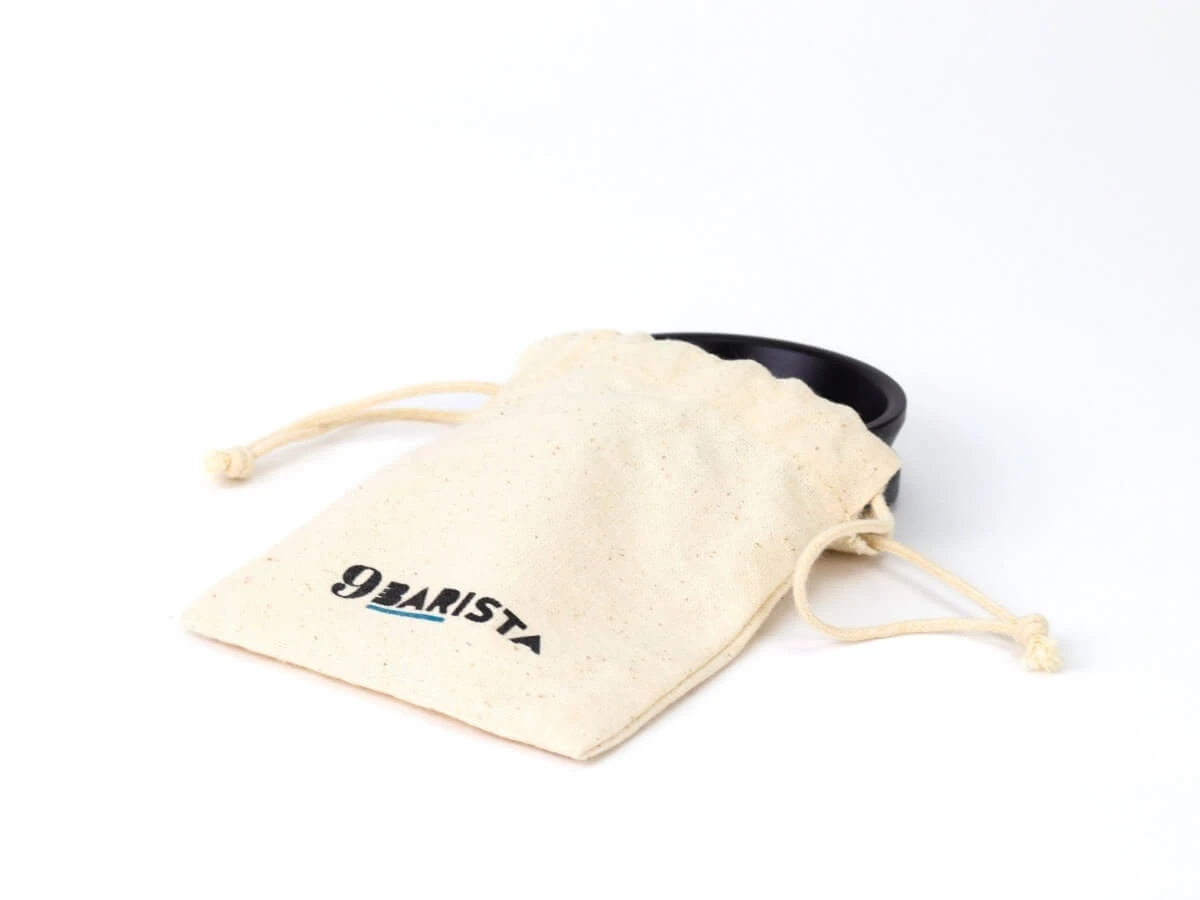 Each dosing ring comes in its own 9Barista-branded drawstring cotton-canvas bag.