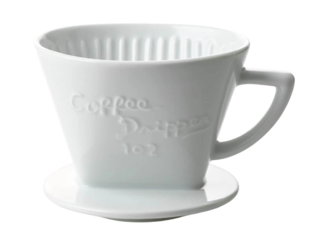 102 model features two outlet holes on its base, with projecting bottom ribs to ensure a steady flow out of the dripper.