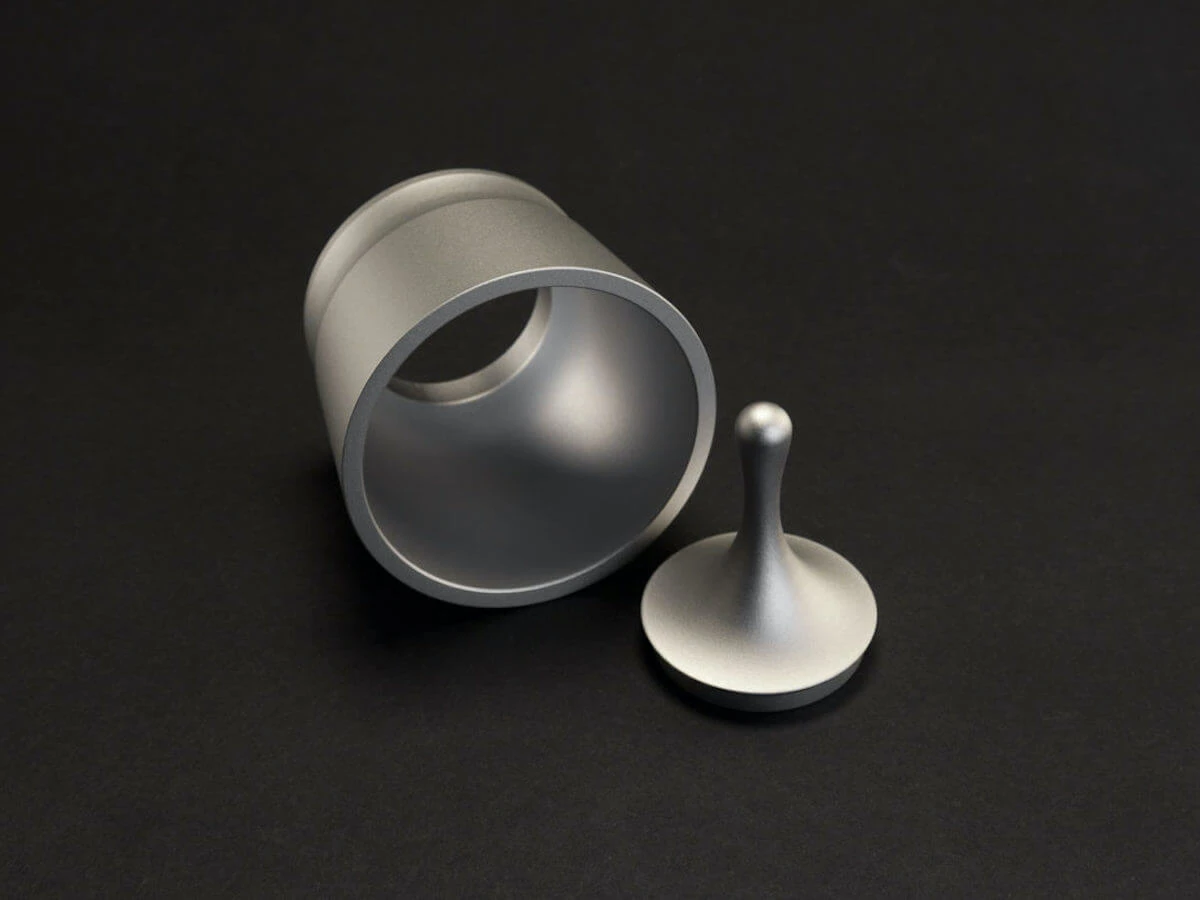 The original accompaniment to the HG-1, the Blind Tumbler is designed to facilitate redistribution before dosing into your portafilter basket or brewer. Simply grind directly into the tumbler, then give the grinds a quick stir; once redistributed, place the Blind Tumbler over your basket or brewer and pull the plug to release your well prepared grind for the next step of your brew.