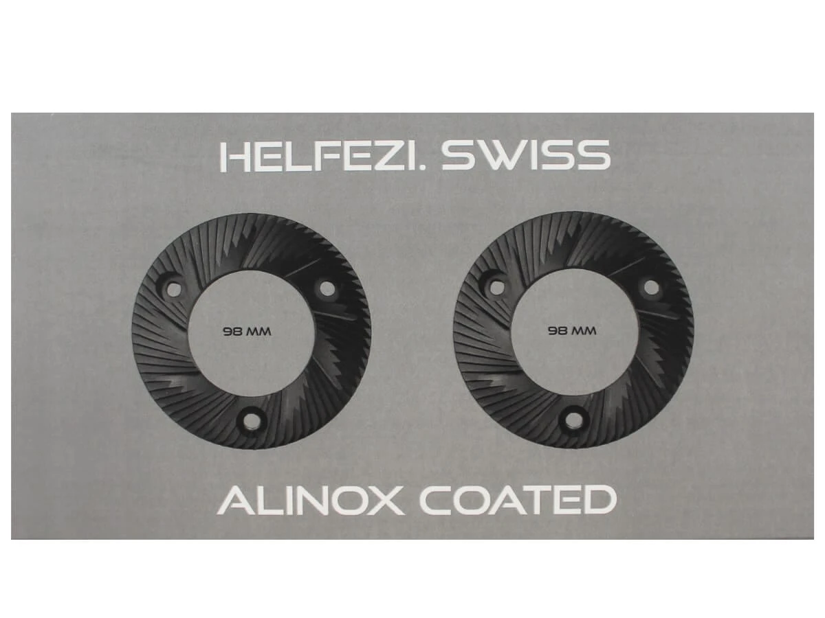 Crafted in Switzerland with unwavering commitment to superior quality, Helfezi’s high-yielding precision flat burrs feature optimised geometry and cutting edge Alinox coating to set a new standard of performance, consistency and durability.