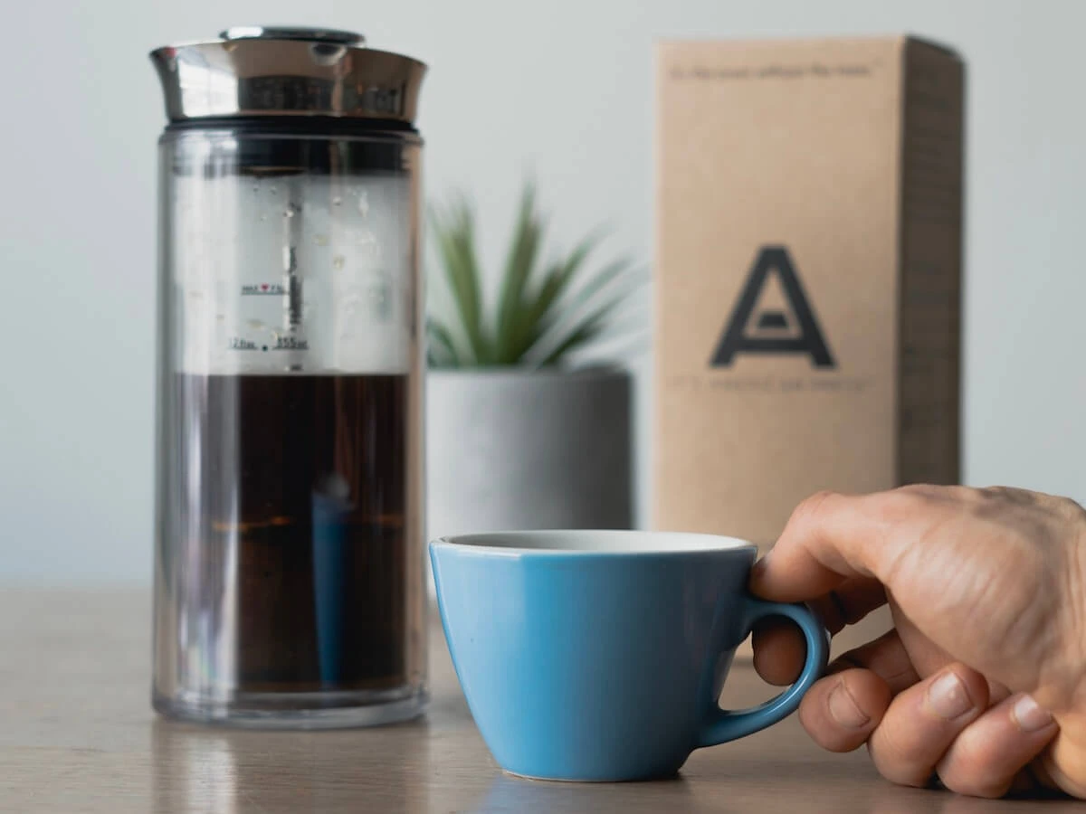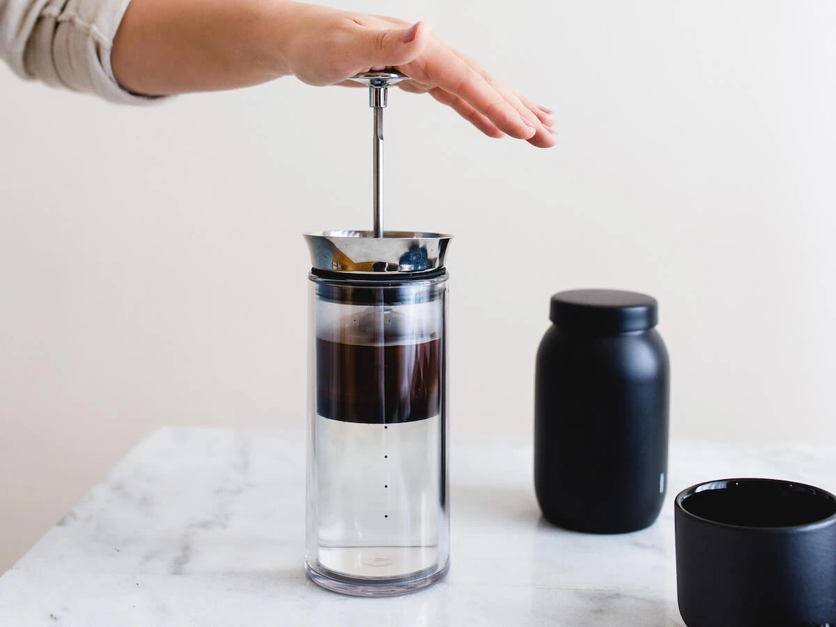 Hand pressed coffee plunger creates visually appealing experience