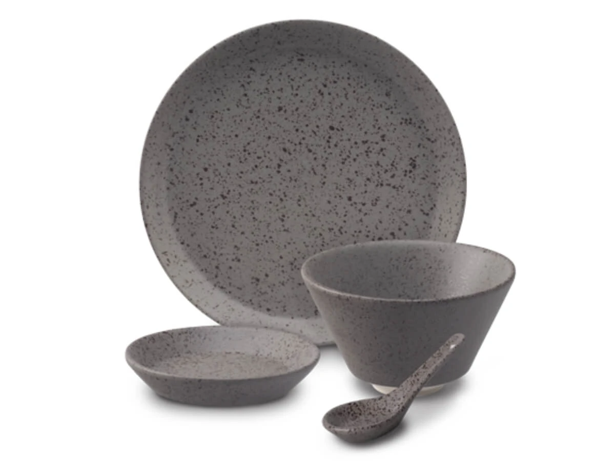 Includes 4 x 18cm Side Plate, 4 x 10cm Sauce Dish, 4 x 11cm Rice Bowl, and 4 x 14cm Spoon.
