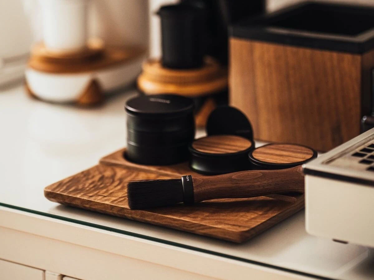 Organisation station includes designated slots for your tamper and other puck preparation tools.