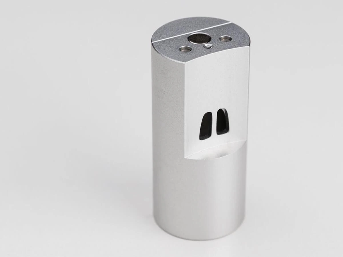Precision CNC machined and anodised aluminium.